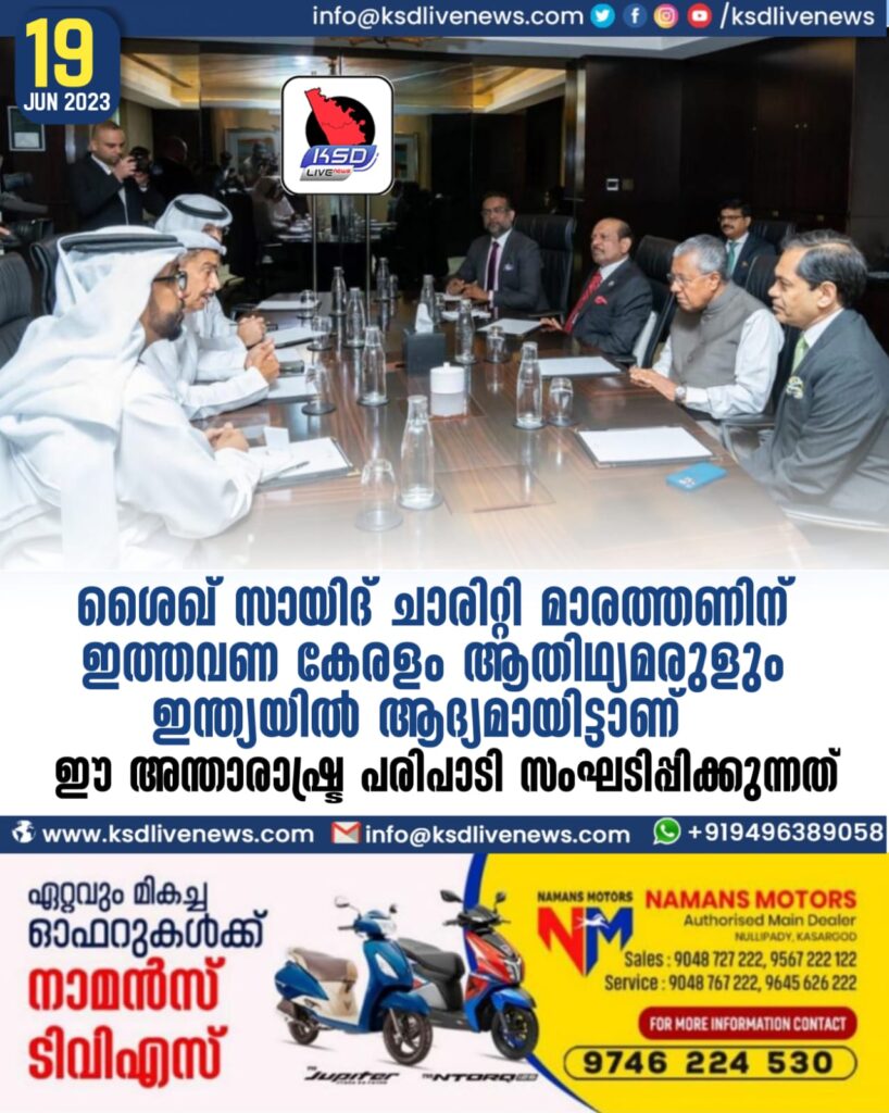 ശൈഖ് സായിദ് ചാരിറ്റി മാരത്തണിന് ഇത്തവണ കേരളം ആതിഥ്യമരുളും ഇന്ത്യയിൽ ആദ്യമായിട്ടാണ് ഈ അന്താരാഷ്ട്ര പരിപാടി സംഘടിപ്പിക്കുന്നത്