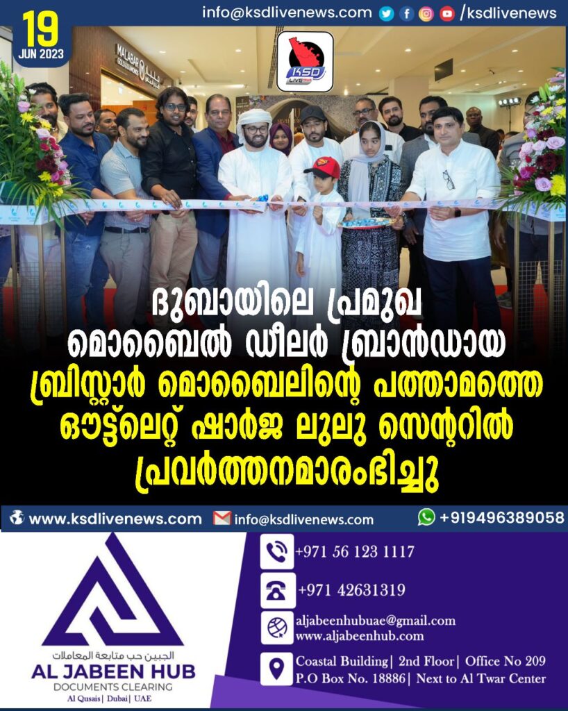 ദുബായിലെ പ്രമുഖ മൊബൈൽ ഡീലർ ബ്രാൻഡായ ബ്രിസ്റ്റാർ മൊബൈലിന്റെ പത്താമത്തെ ഔട്ട്ലെറ്റ് ഷാർജ ലുലു സെന്ററിൽ പ്രവർത്തനമാരംഭിച്ചു