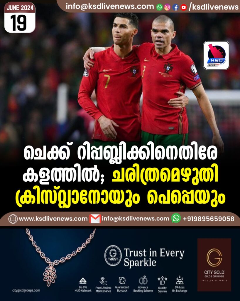 ചെക്ക് റിപ്പബ്ലിക്കിനെതിരേ കളത്തില്; ചരിത്രമെഴുതി ക്രിസ്റ്റ്യാനോയും പെപ്പെയും