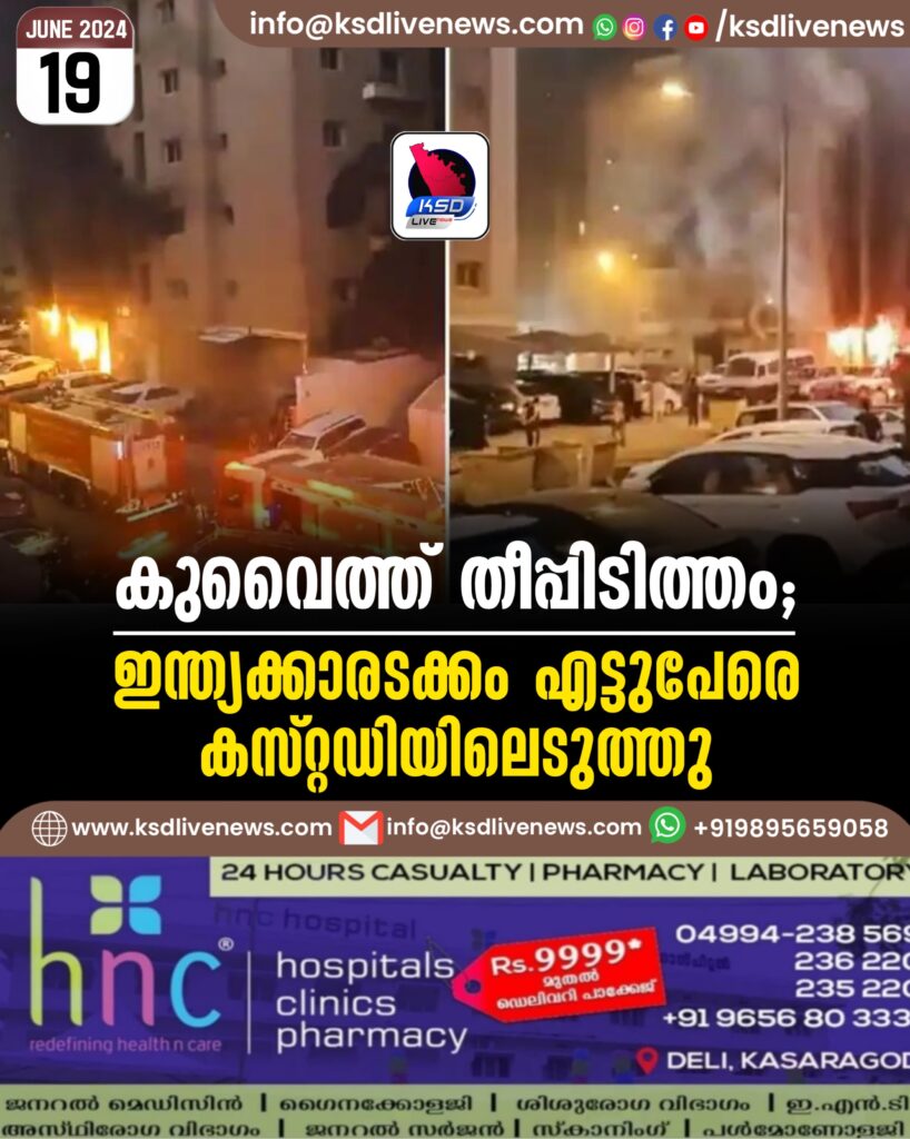 കുവൈത്ത് തീപ്പിടിത്തം; ഇന്ത്യക്കാരടക്കം എട്ടുപേരെ കസ്റ്റഡിയിലെടുത്തു