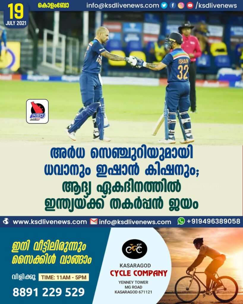 അര്ധ സെഞ്ചുറിയുമായി ധവാനും ഇഷാന് കിഷനും; ആദ്യ ഏകദിനത്തില് ഇന്ത്യയ്ക്ക് തകര്പ്പന് ജയം