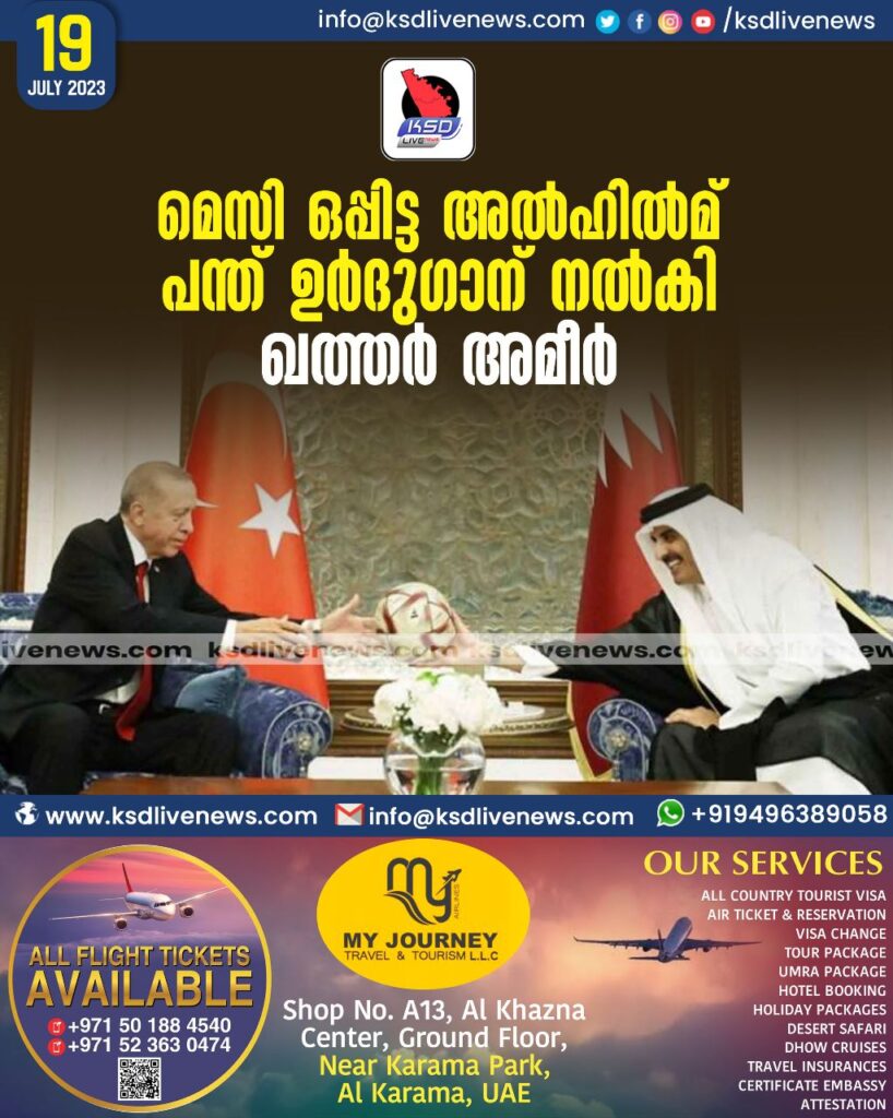 മെസി ഒപ്പിട്ട അൽഹിൽമ് പന്ത് ഉർദുഗാന് നൽകി ഖത്തർ അമീർ