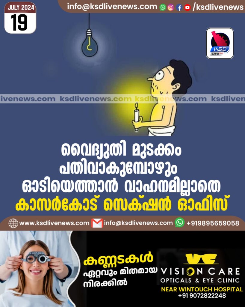 വൈദ്യുതി മുടക്കം പതിവാകുമ്പോഴും ഓടിയെത്താൻ വാഹനമില്ലാതെ കാസർകോട് സെക്ഷൻ ഓഫിസ്