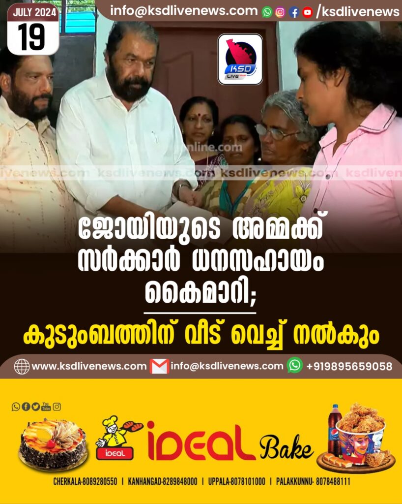 ജോയിയുടെ അമ്മക്ക് സർക്കാർ ധനസഹായം കൈമാറി; കുടുംബത്തിന് വീട് വെച്ച് നൽകും