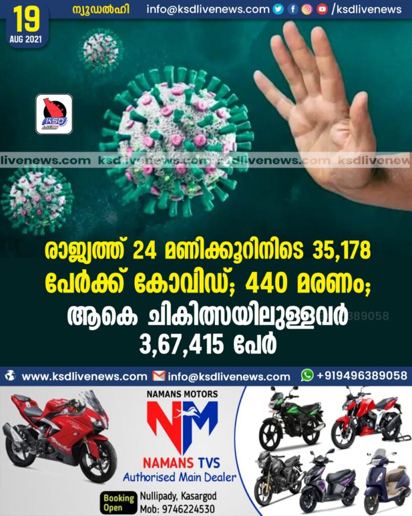 രാജ്യത്ത് 24 മണിക്കൂറിനിടെ 35,178 പേർക്ക് കോവിഡ്; 440 മരണം; ആകെ ചികിത്സയിലുള്ളവർ 3,67,415 പേർ