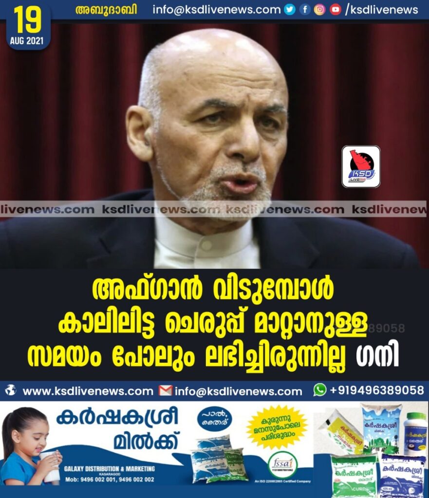 അഫ്ഗാന് വിടുമ്പോള് കാലിലിട്ട ചെരുപ്പ് മാറ്റാനുള്ള സമയം പോലും ലഭിച്ചിരുന്നില്ല- ഗനി