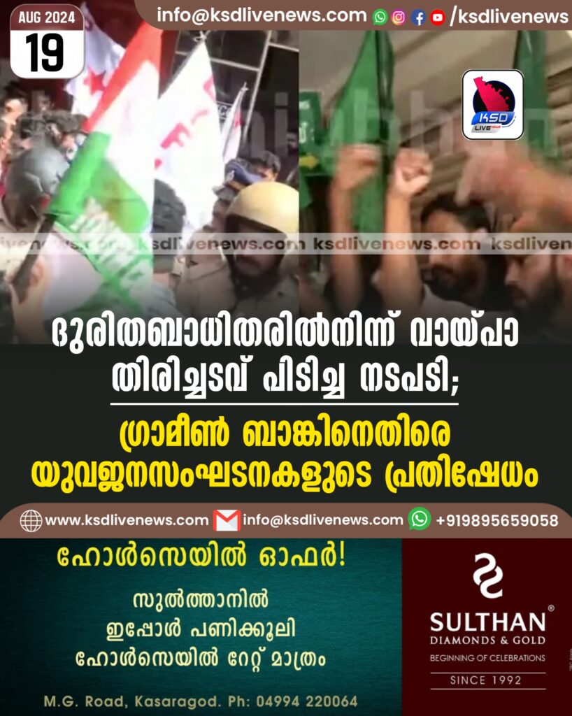 ദുരിതബാധിതരിൽനിന്ന് വായ്പാ തിരിച്ചടവ് പിടിച്ച നടപടി: ഗ്രാമീൺ ബാങ്കിനെതിരെ യുവജനസംഘടനകളുടെ പ്രതിഷേധം