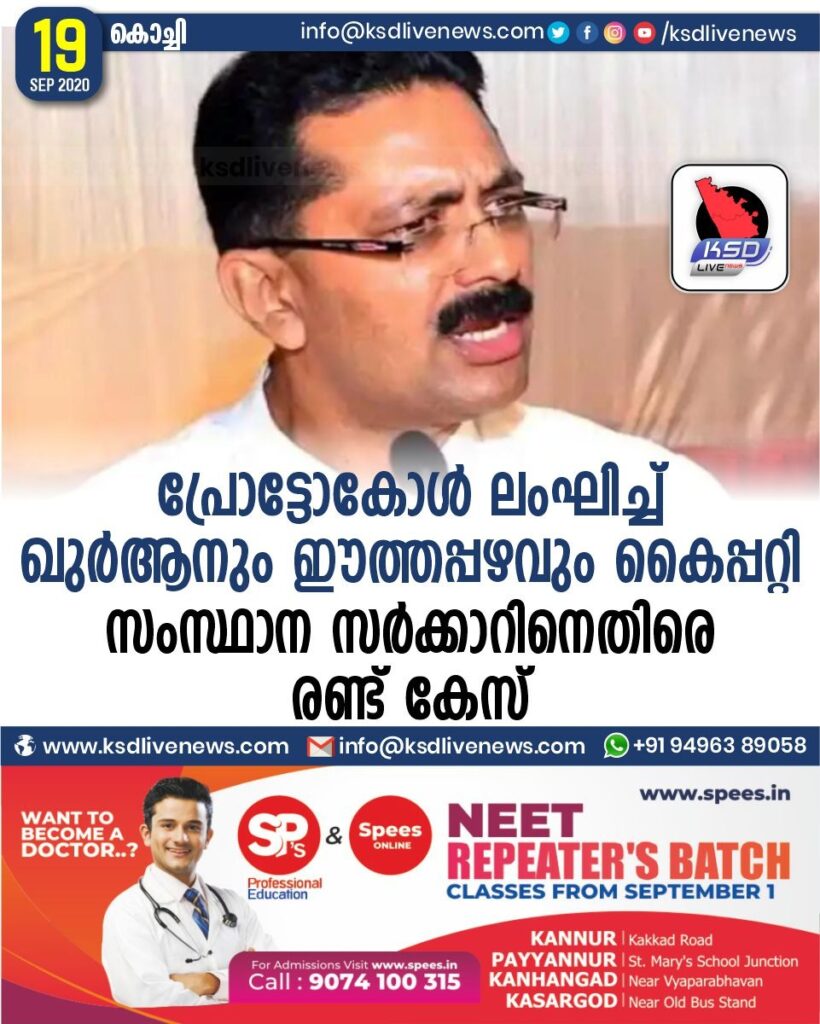 പ്രോട്ടോകോൾ ലംഘിച്ച് ഖുർആനും ഈത്തപ്പഴവും കൈപ്പറ്റി ; സംസ്ഥാന സർക്കാറിനെതിരെ രണ്ട് കേസ്