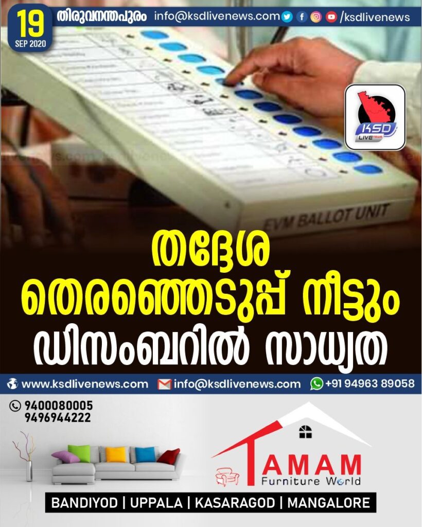 ത​ദ്ദേ​ശ തെ​ര​ഞ്ഞെ​ടു​പ്പ് നീ​ട്ടും; ഡി​സം​ബ​റി​ൽ സാ​ധ്യ​ത