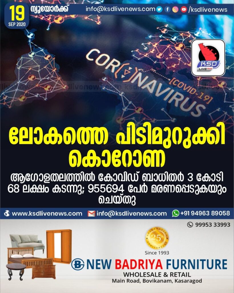 ആഗോളതലത്തിൽ കോവിഡ് ബാധിതർ 3 കോടി 68 ലക്ഷം കടന്നു ; 955694 പേര്‍ മരണപ്പെടുകയും ചെയ്തു