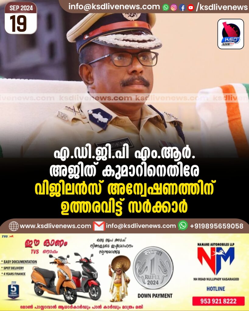 ADGP എം.ആർ. അജിത്കുമാറിനെതിരേ വിജിലന്സ് അന്വേഷണത്തിന് ഉത്തരവിട്ട് സർക്കാർ