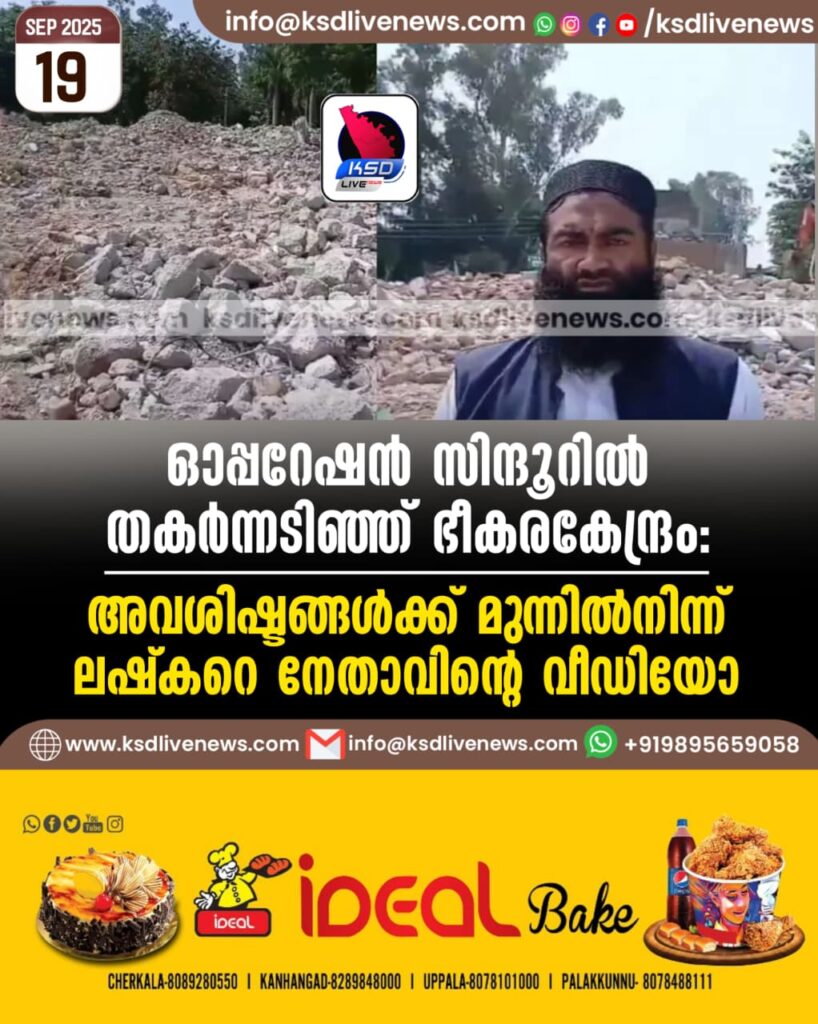 ഓപ്പറേഷൻ സിന്ദൂറിൽ തകർന്നടിഞ്ഞ് ഭീകരകേന്ദ്രം: അവശിഷ്ടങ്ങൾക്ക് മുന്നിൽനിന്ന് ലഷ്കറെ നേതാവിന്റെ വീഡിയോ