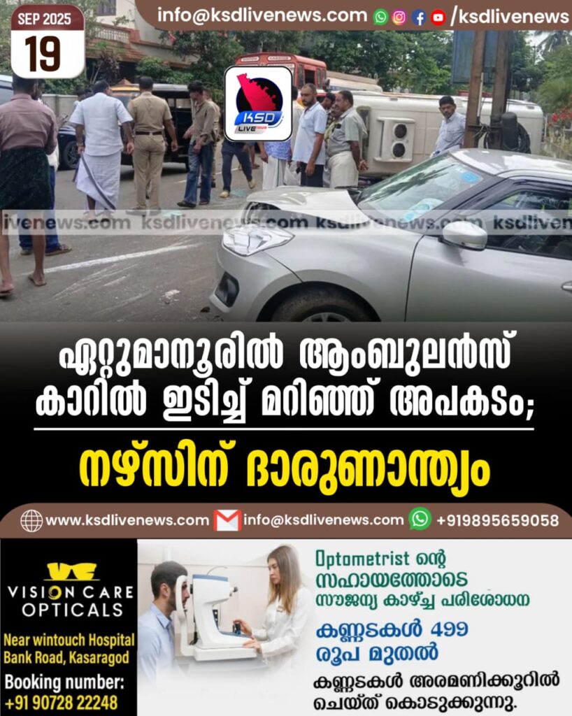 ഏറ്റുമാനൂരില്‍ ആംബുലന്‍സ് കാറില്‍ ഇടിച്ച് മറിഞ്ഞ് അപകടം; നഴ്സിന് ദാരുണാന്ത്യം