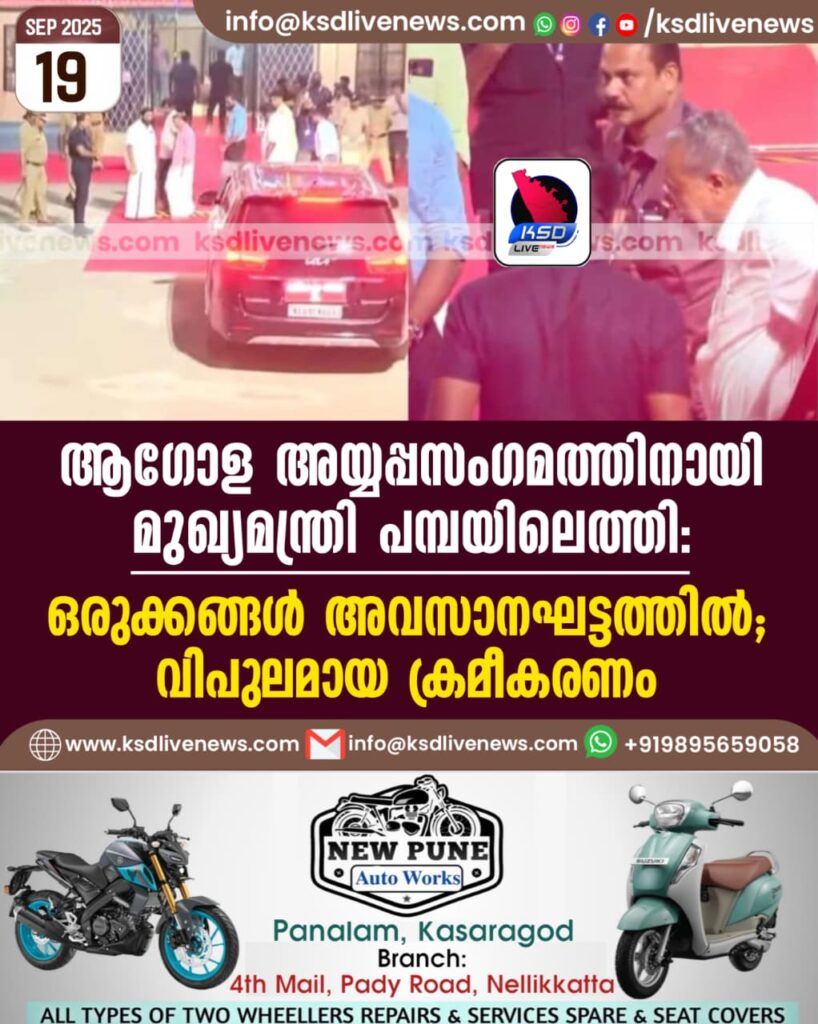 ആഗോള അയ്യപ്പസംഗമത്തിനായി മുഖ്യമന്ത്രി പമ്പയിലെത്തി; ഒരുക്കങ്ങൾ അവസാനഘട്ടത്തിൽ, വിപുലമായ ക്രമീകരണം