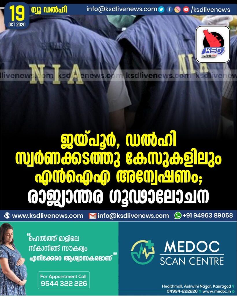ജയ്പൂർ , ഡൽഹി സ്വർണക്കടത്തു കേസുകളിലും എൻഐഎ അന്വേഷണം ; രാജ്യാന്തര ഗൂഢാലോചന