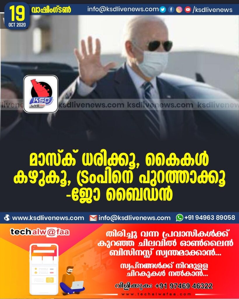 മാസ്‌ക് ധരിക്കൂ, കൈകള്‍ കഴുകൂ, ട്രംപിനെ പുറത്താക്കൂ – ജോ ബൈഡന്‍