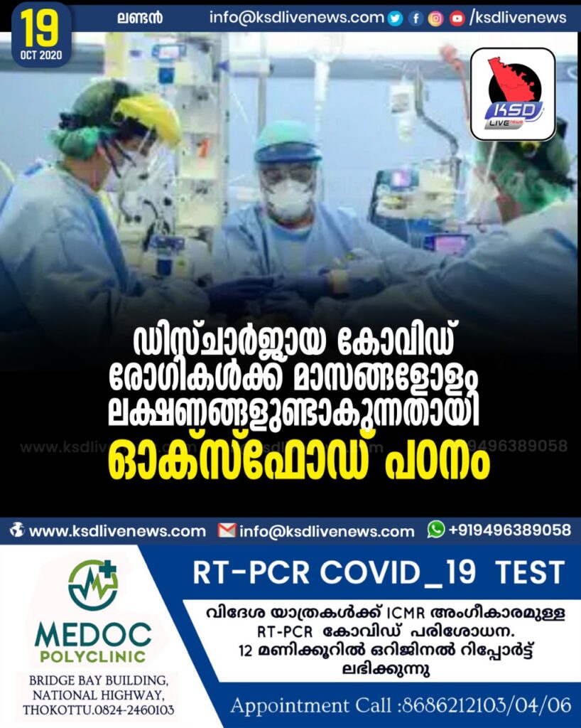 ഡിസ്ചാർജായ കോവിഡ് രോഗികൾക്ക് മാസങ്ങളോളം ലക്ഷണങ്ങളുണ്ടാകുന്നതയി ഓക്സ്ഫോഡ് പഠനം