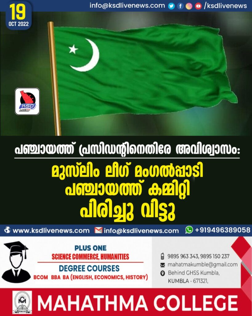 പഞ്ചായത്ത് പ്രസിഡന്റിനെതിരേ അവിശ്വാസം: മുസ്ലിം ലീഗ് മംഗൽപ്പാടി പഞ്ചായത്ത് കമ്മിറ്റി പിരിച്ചുവിട്ടു.
