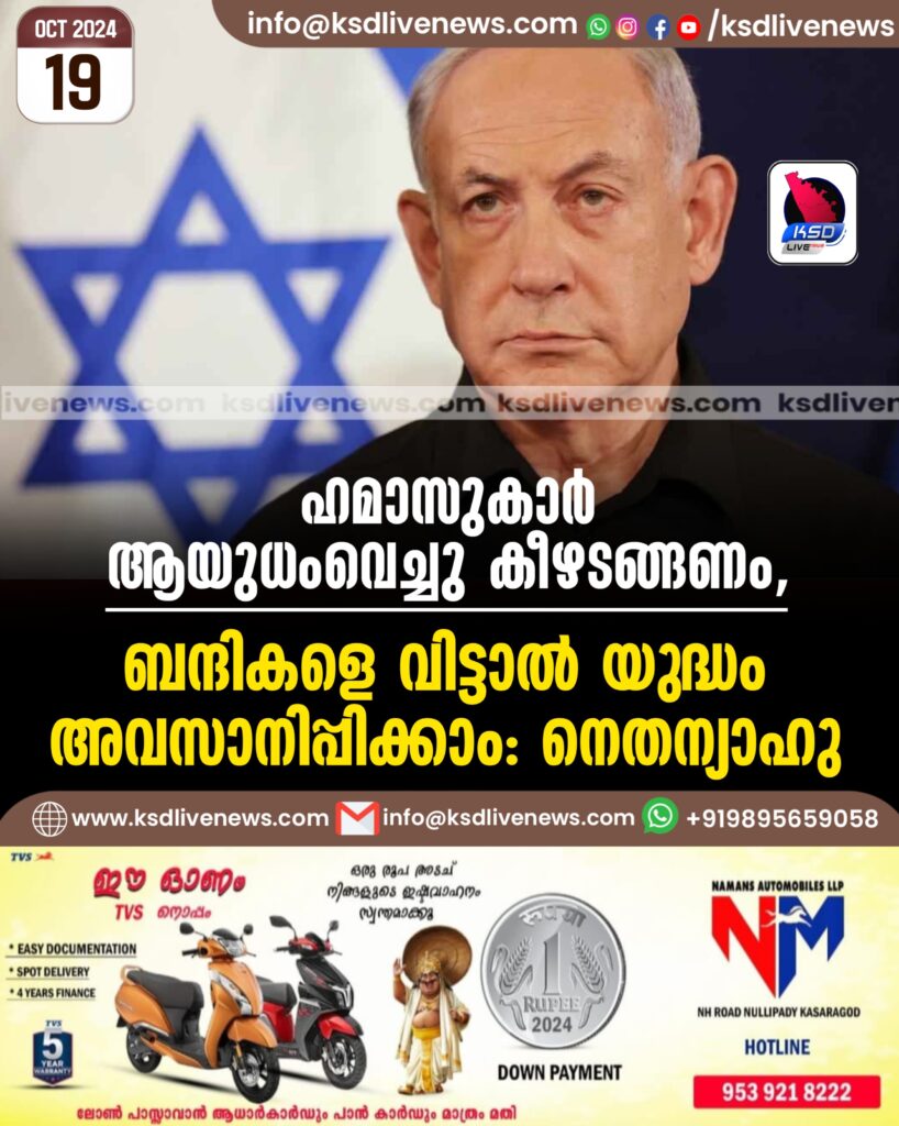ഹമാസുകാര്‍ ആയുധംവെച്ചു കീഴടങ്ങണം, ബന്ദികളെ വിട്ടാല്‍ യുദ്ധം അവസാനിപ്പിക്കാം: നെതന്യാഹു
