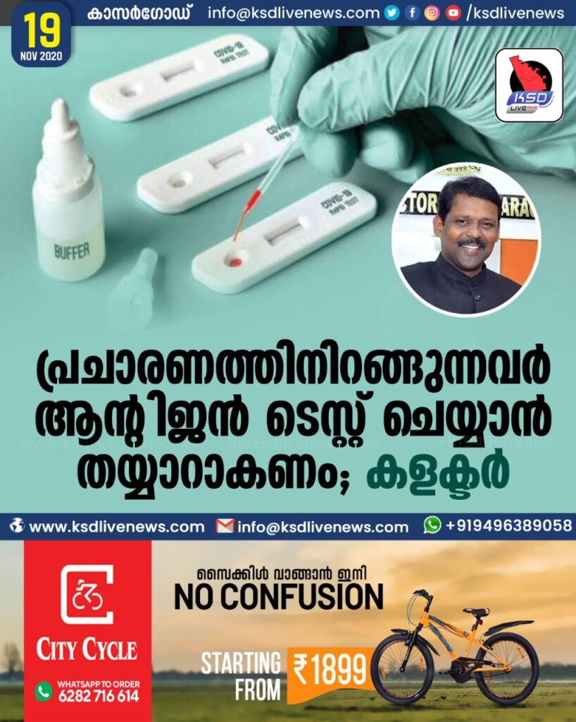 പ്രചാരണത്തിനിറങ്ങുന്നവർ ആന്റിജൻ ടെസ്റ്റ് ചെയ്യാൻ തയ്യാറാകണം ; കളക്ടർ