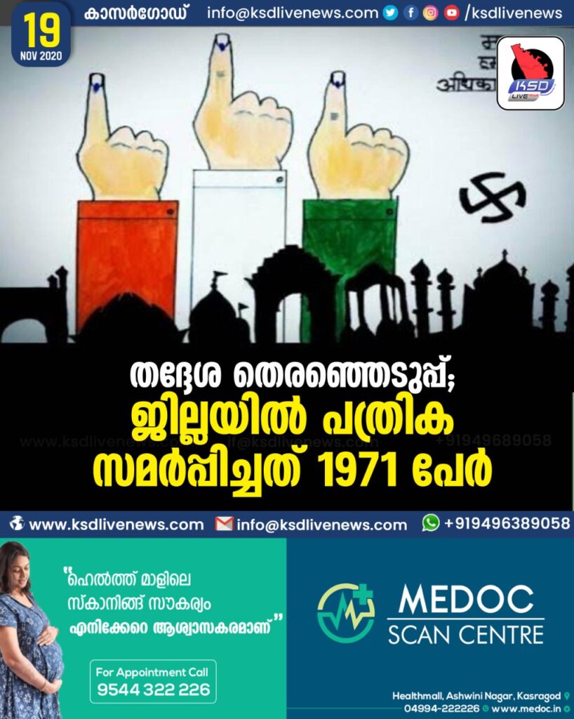 തദ്ദേശ തെരഞ്ഞെടുപ്പ് ; ജില്ലയിൽ പത്രിക സമർപ്പിച്ചത് 1971 പേർ