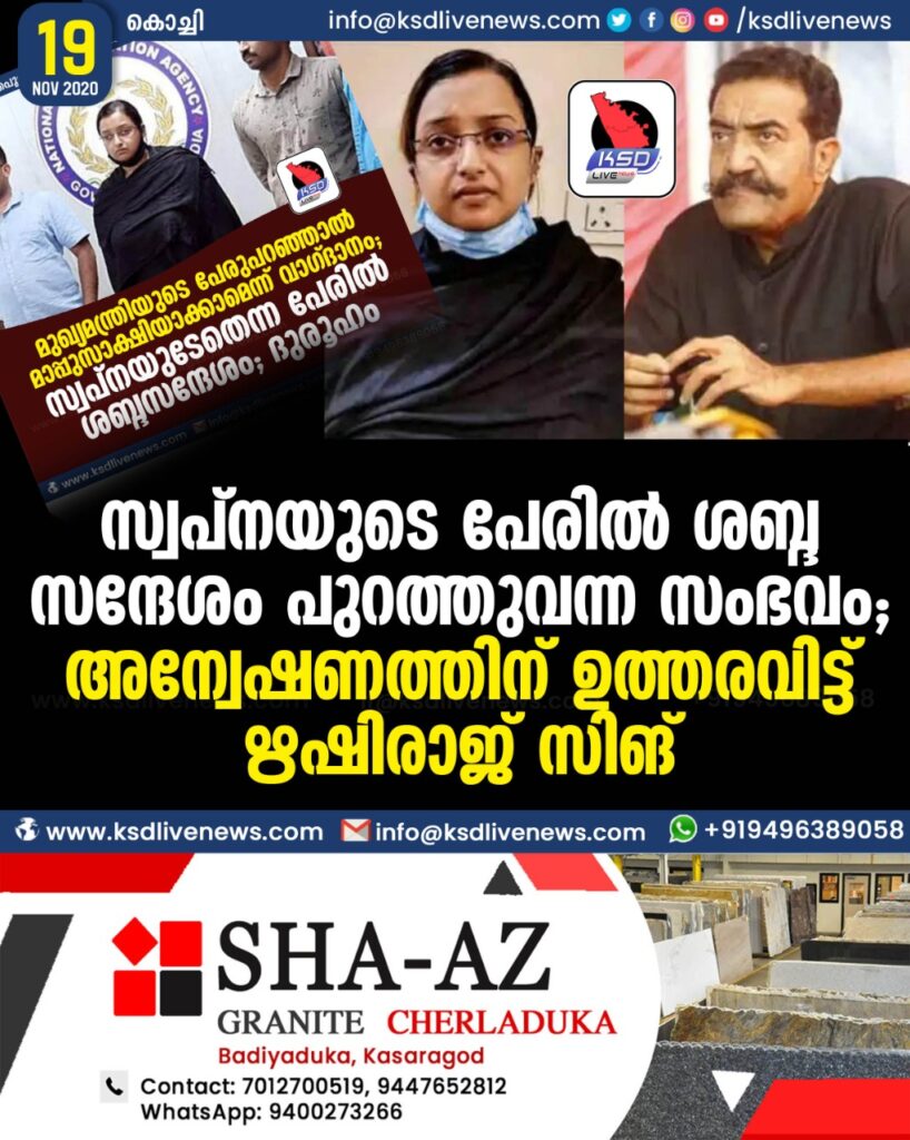 സ്വപ്നയുടെ പേരിൽ ശബ്ദ സന്ദേശം പുറത്തുവന്ന സംഭവം ; അന്വേഷണത്തിന് ഉത്തരവിട്ട് ഋഷിരാജ് സിങ്