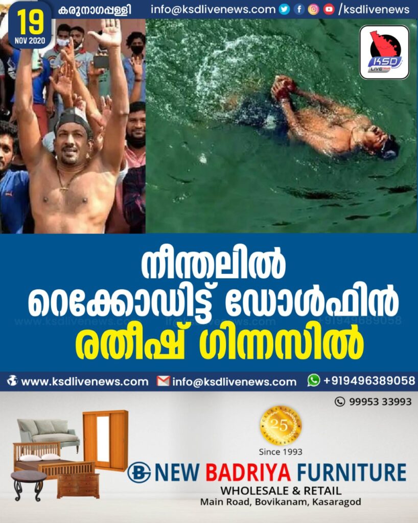 നീന്തലിൽ റെക്കോഡിട്ട് ഡോൾഫിൻ രതീഷ് ഗിന്നസിൽ
