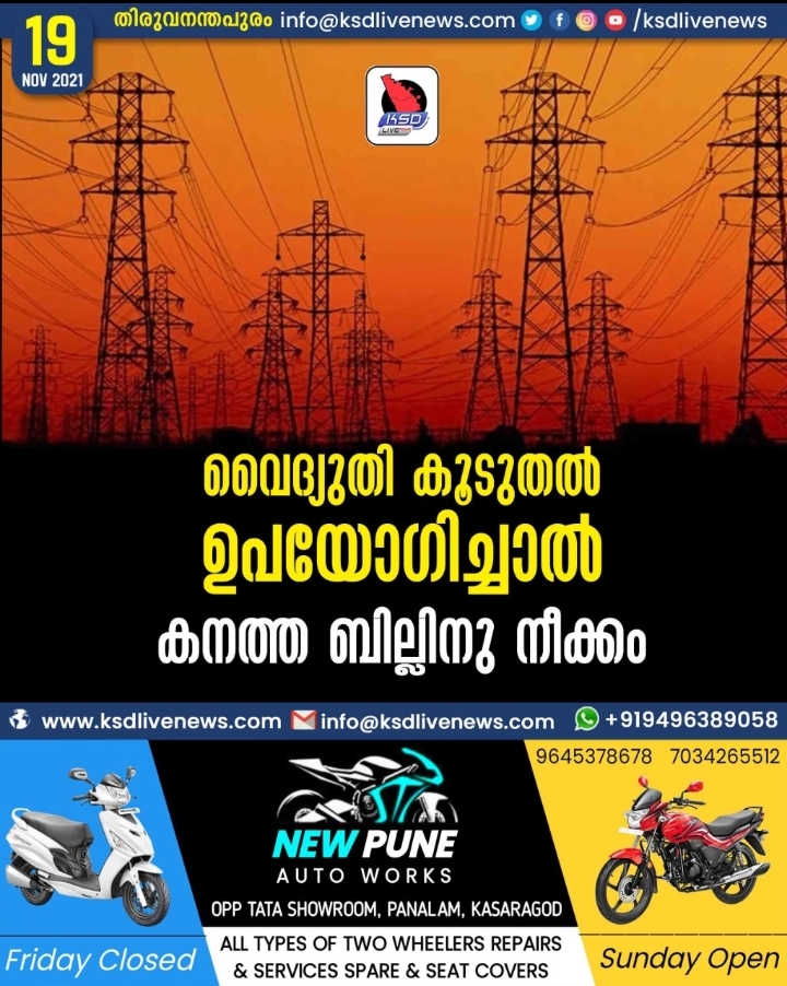 ഉപയോഗം കൂടുതലുള്ള രാത്രിയിൽ വൈദ്യുതിക്ക് അധികനിരക്ക് ഈടാക്കണമെന്ന ആവശ്യം ചർച്ചയിലാണെന്ന് മന്ത്രി കെ. കൃഷ്ണൻകുട്ടി. മുഖ്യമന്ത്രിയുമായി ആലോചിച്ച് തീരുമാനിക്കും.