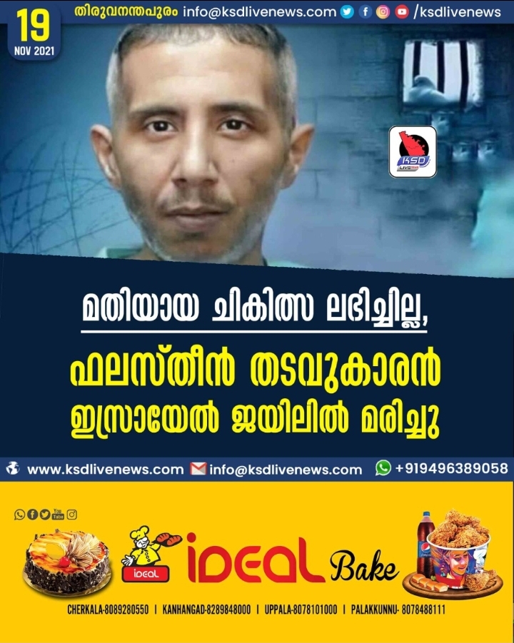 മതിയായ ചികിത്സ ലഭിച്ചില്ല, ഫലസ്തീന് തടവുകാരന് ഇസ്രായേല് ജയിലില് മരിച്ചു