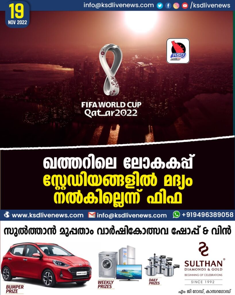 ഖത്തറിലെ ലോകകപ്പ് സ്റ്റേഡിയങ്ങളില് മദ്യം നല്കില്ലെന്ന് ഫിഫ