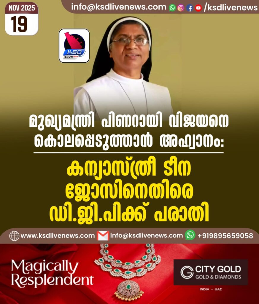 മുഖ്യമന്ത്രി പിണറായി വിജയനെ കൊലപ്പെടുത്താൻ അഹ്വാനം: കന്യാസ്ത്രീ ടീന ജോസിനെതിരെ ഡിജിപിക്ക് പരാതി