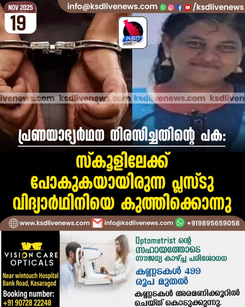പ്രണയാഭ്യര്ഥന നിരസിച്ചതിന്റെ പക; സ്കൂളിലേക്ക് പോകുകയായിരുന്ന പ്ലസ്ടു വിദ്യാര്ഥിനിയെ കുത്തിക്കൊന്നു