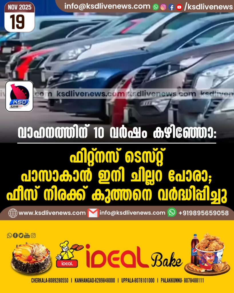 വാഹനത്തിന് 10 വര്ഷം കഴിഞ്ഞോ: ഫിറ്റ്നസ് ടെസ്റ്റ് പാസാകാൻ ഇനി ചില്ലറ പോരാ; ഫീസ് നിരക്ക് കുത്തനെ വര്ദ്ധിപ്പിച്ചു