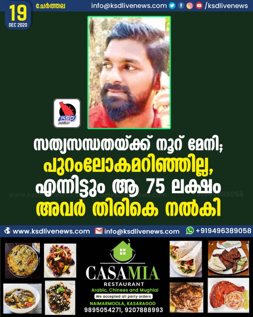 സത്യസന്ധതയ്ക്ക് നൂറ് മേനി ; പുറംലോകമറിഞ്ഞില്ല, എന്നിട്ടും ആ 75 ലക്ഷം അവർ തിരികെ നൽകി
