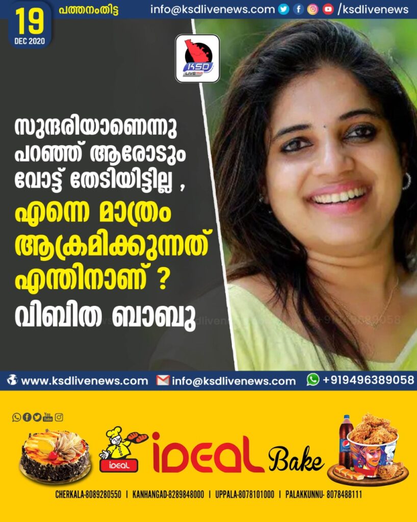 സുന്ദരിയാണെന്നു പറഞ്ഞ് ആരോടും വോട്ട് തേടിയിട്ടില്ല , എന്നെ മാത്രം ആക്രമിക്കുന്നത് എന്തിനാണ് ? വിബിത ബാബു