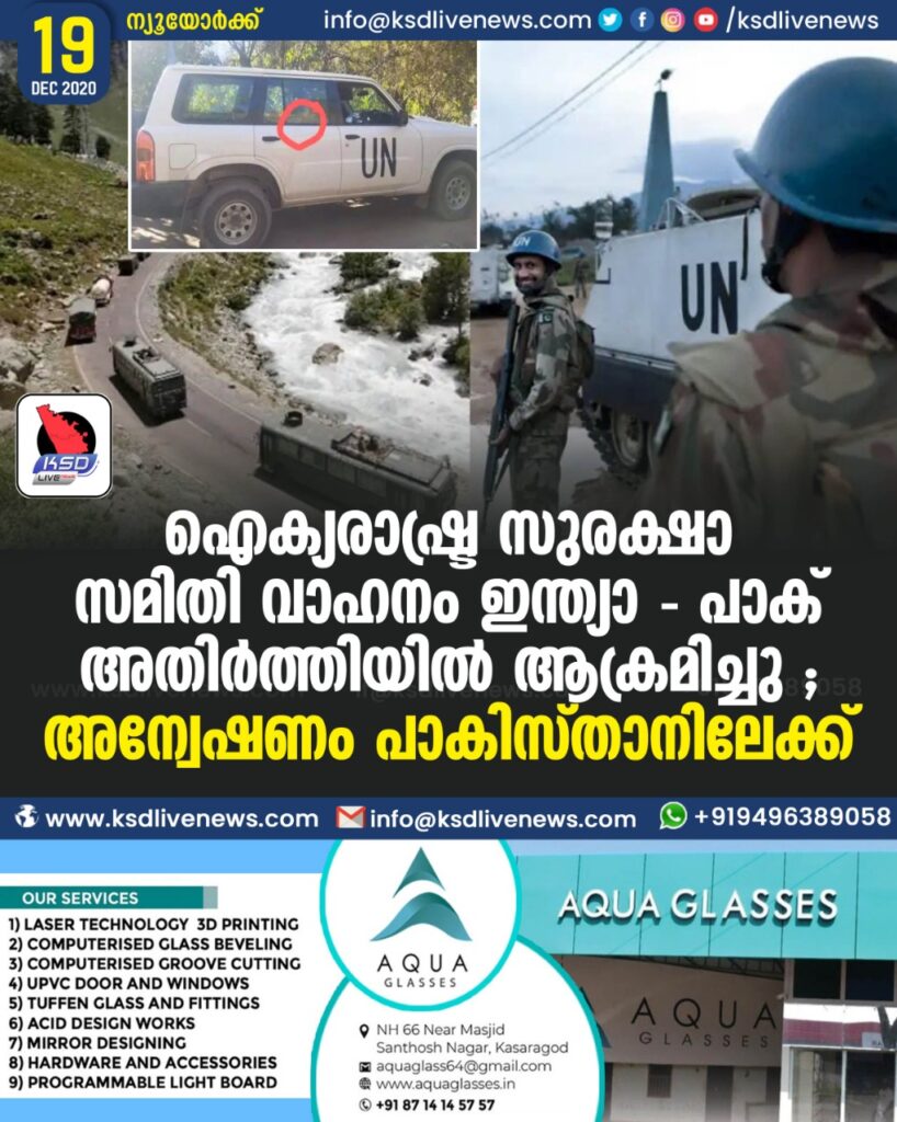 ഐക്യരാഷ്ട്ര സുരക്ഷാ സമിതി വാഹനം ഇന്ത്യാ – പാക് അതിർത്തിയിൽ ആക്രമിച്ചു ; അന്വേഷണം പാകിസ്താനിലേക്ക്