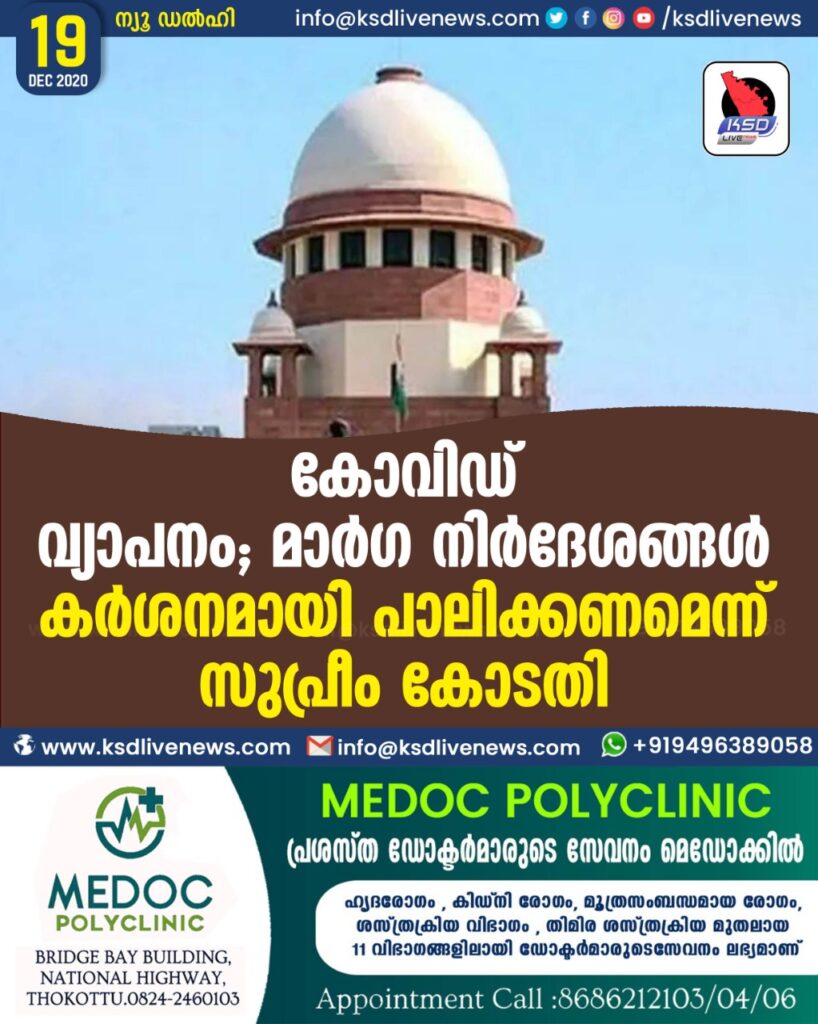 കോവിഡ് വ്യാപനം ; മാർഗ നിർദേശങ്ങൾ കർശനമായി പാലിക്കണമെന്ന് സുപ്രീം കോടതി