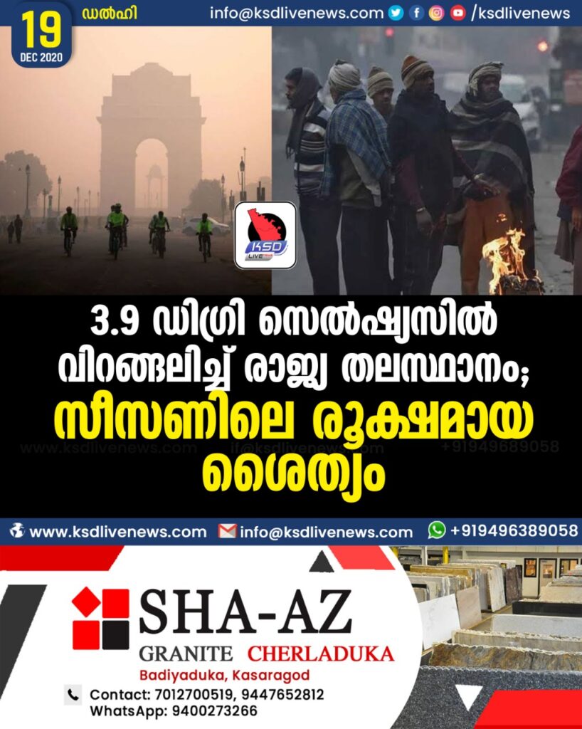 3.9 ഡിഗ്രി സെൽഷ്യസിൽ വിറങ്ങലിച്ച് രാജ്യ തലസ്ഥാനം; സീസണിലെ രൂക്ഷമായ ശൈത്യം
