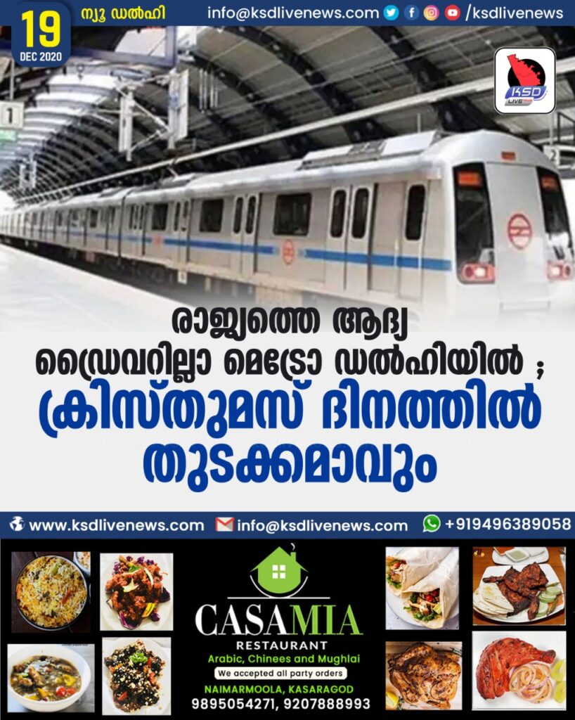 രാജ്യത്തെ ആദ്യ ഡ്രൈവറില്ലാ മെട്രോ ഡൽഹിയിൽ ; ക്രിസ്തുമസ് ദിനത്തിൽ തുടക്കമാവും