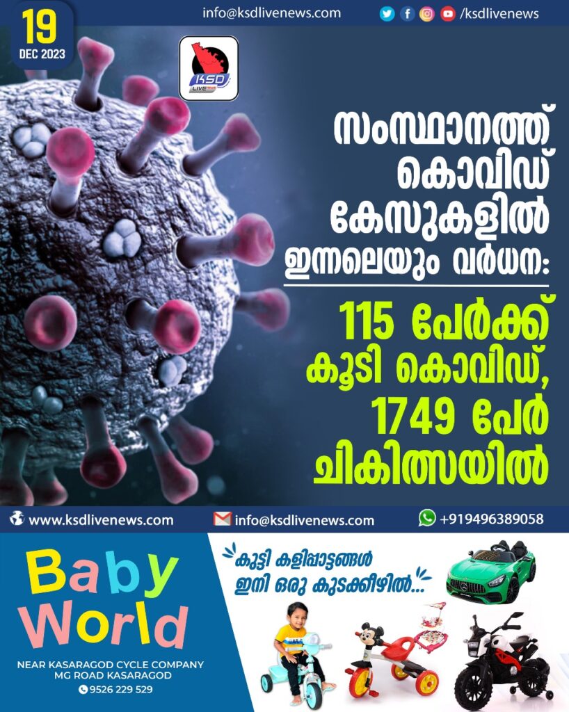 സംസ്ഥാനത്ത് കൊവിഡ് കേസുകളിൽ ഇന്നലെയും വര്‍ധന: 115 പേര്‍ക്ക് കൂടി കൊവിഡ്, 1749 പേർ ചികിത്സയിൽ