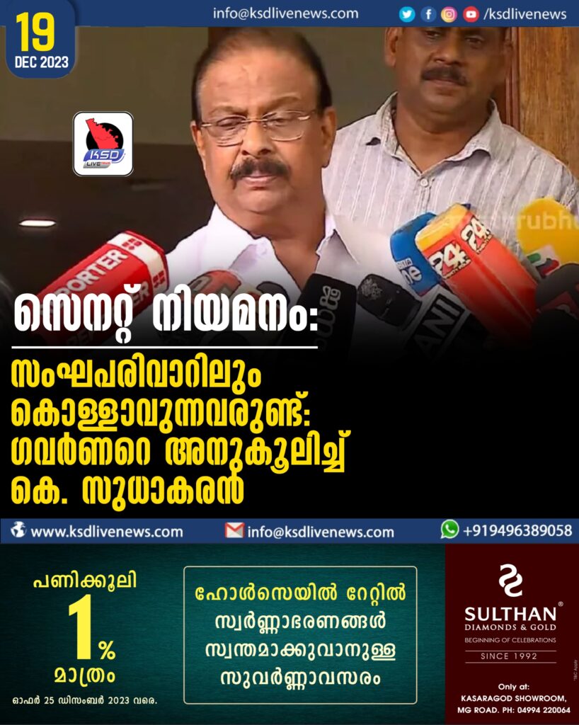സെനറ്റ് നിയമനം: സംഘപരിവാറിലും കൊള്ളാവുന്നവരുണ്ട്: ഗവര്ണറെ അനുകൂലിച്ച് കെ.സുധാകരന്