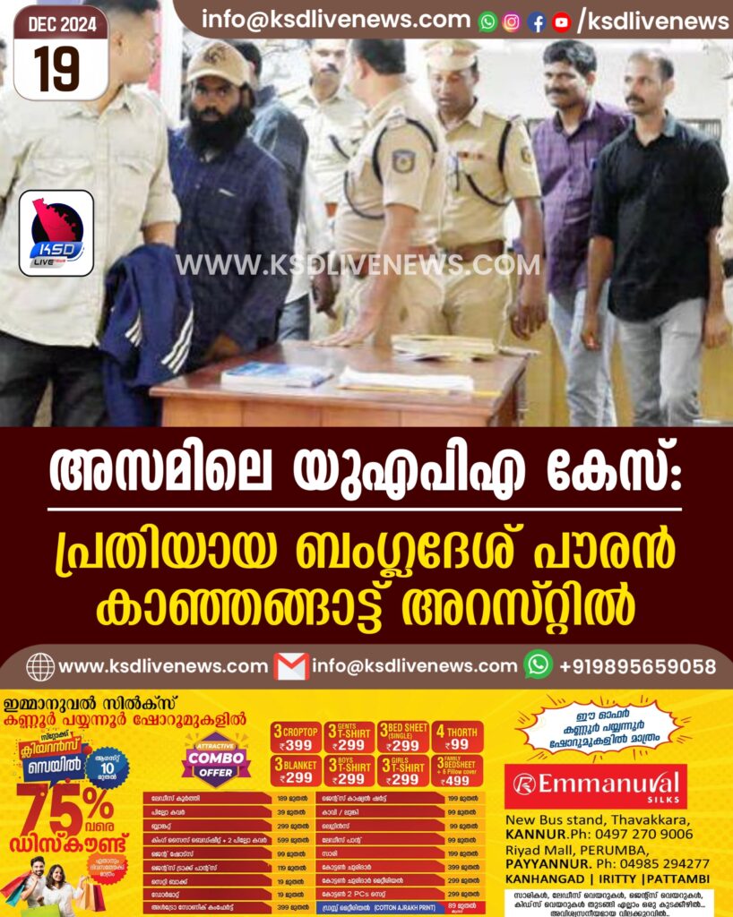 അസമിലെ യുഎപിഎ കേസ്: പ്രതിയായ ബംഗ്ലദേശ് പൗരൻ കാഞങ്ങാട്ട് അറസ്റ്റിൽ