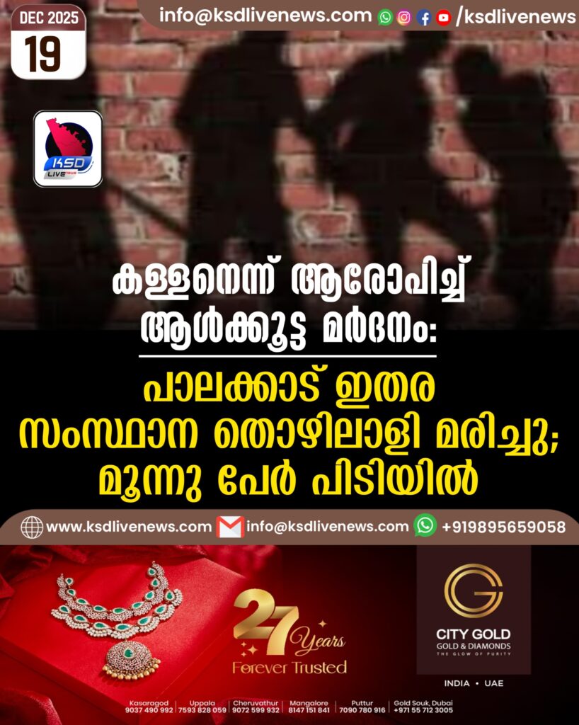 കള്ളനെന്ന് ആരോപിച്ച് ആള്ക്കൂട്ട മര്ദനം; പാലക്കാട് ഇതര സംസ്ഥാന തൊഴിലാളി മരിച്ചു, മൂന്നു പേര് പിടിയിൽ