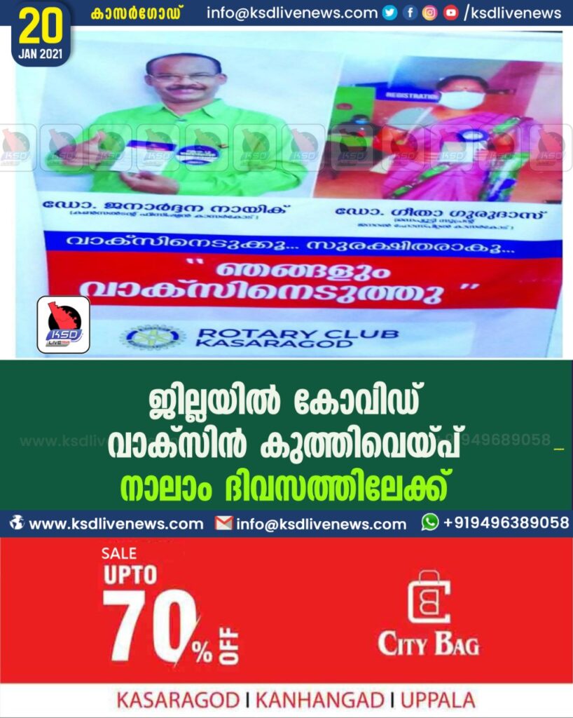 ജില്ലയിൽ കോവിഡ് വാക്സിൻ കുത്തിവെയ്പ് നാലാം ദിവസത്തിലേക്ക്