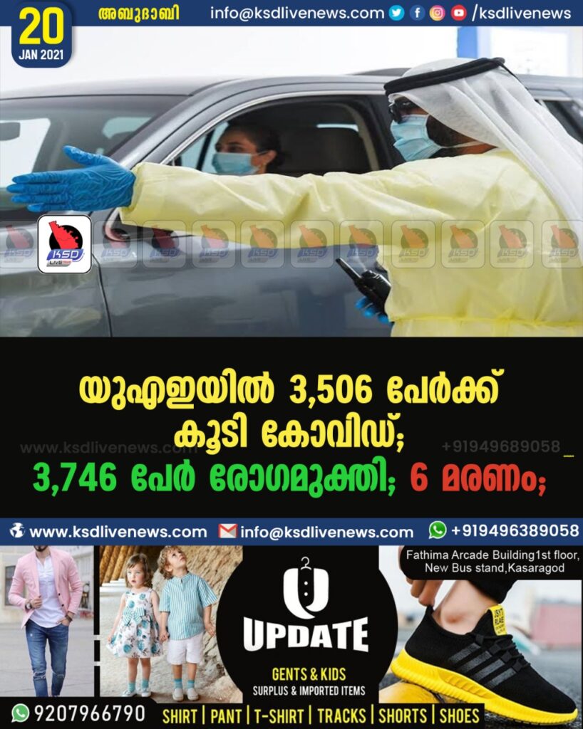 യുഎഇയില് 3,506 പേര്ക്ക് കൂടി കോവിഡ്; 3,746 പേര് രോഗമുക്തി;