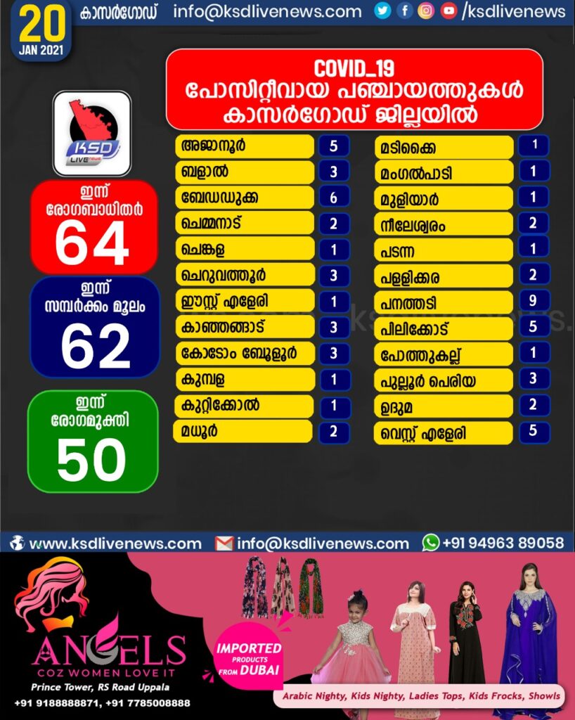 കാസർഗോഡ് ജില്ലയിൽ ഇന്ന് കോവിഡ് സ്ഥിരീകരിച്ചവരുടെ പഞ്ചായത്ത് തിരിച്ചുള്ള സ്ഥിതി വിവര കണക്ക്