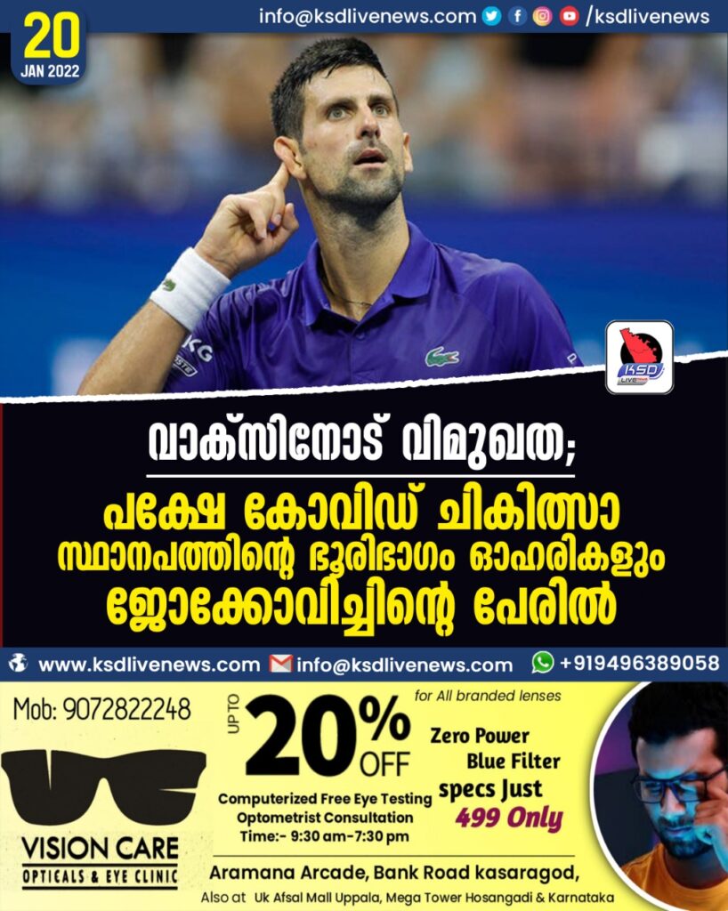 കോവിഡ് വാക്സിൻ സ്വീകരിക്കാതെയും മെഡിക്കൽ ഇളവ് നേടാതെയും ഓസ്ട്രേലിയൻ ഓപ്പണിൽ പങ്കെടുക്കാനെത്തിയ ജോക്കോവിച്ചിനെ ഓസ്ട്രേലിയൻ സർക്കാർ നാടുകടത്തി ദിവസങ്ങൾക്കുള്ളിലാണ് ഈ വിവരം പുറത്തുവരുന്നത്.