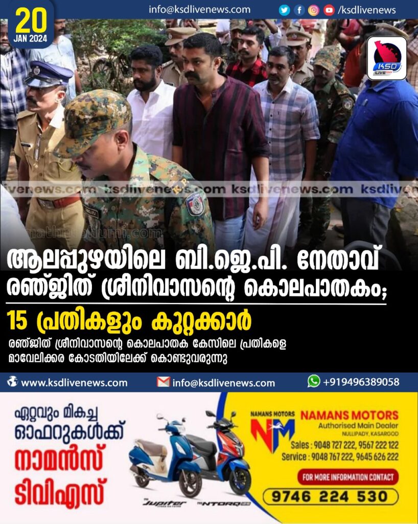ആലപ്പുഴയിലെ ബി.ജെ.പി. നേതാവ് രഞ്ജിത് ശ്രീനിവാസന്റെ കൊലപാതകം; 15 പ്രതികളും കുറ്റക്കാര്