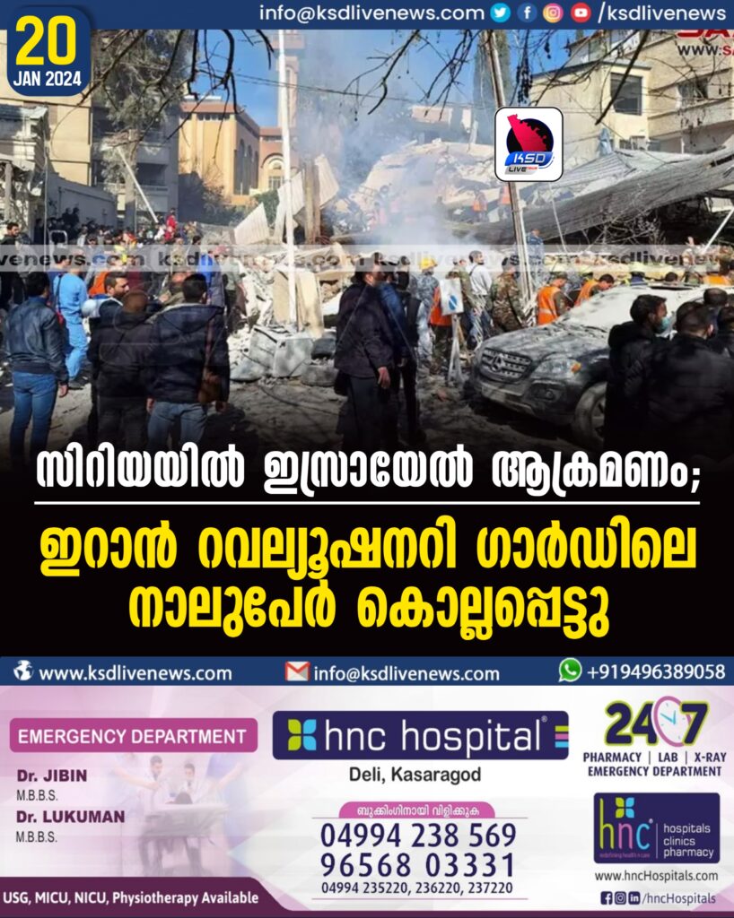 സിറിയയിൽ ഇസ്രായേൽ ആക്രമണം; ഇറാൻ റവല്യൂഷനറി ഗാർഡിലെ നാലുപേർ കൊല്ലപ്പെട്ടു