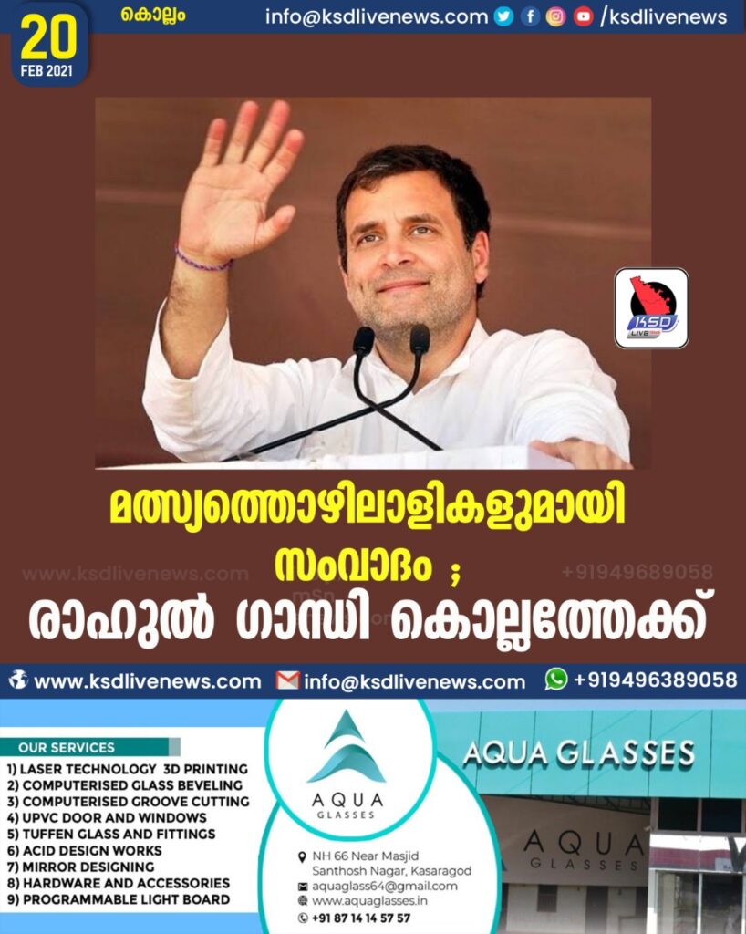 കൊല്ലം: മത്സ്യത്തൊഴിലാളികളുമായി സംവാദിക്കാന് രാഹുല് ഗാന്ധി കൊല്ലത്തേക്കു വരുന്നു. ഈ മാസം 24-ാം തീയതി രാഹുല് ഗാന്ധി എത്തുന്നത്.